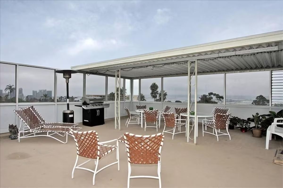 The building features a common area rooftop patio with PANORAMIC views of San Diego Bay, Downtown, Balboa Park & the Sea World fireworks. A BBQ is available for residents' use. We also have 1 parking space in the underground, secured garage.